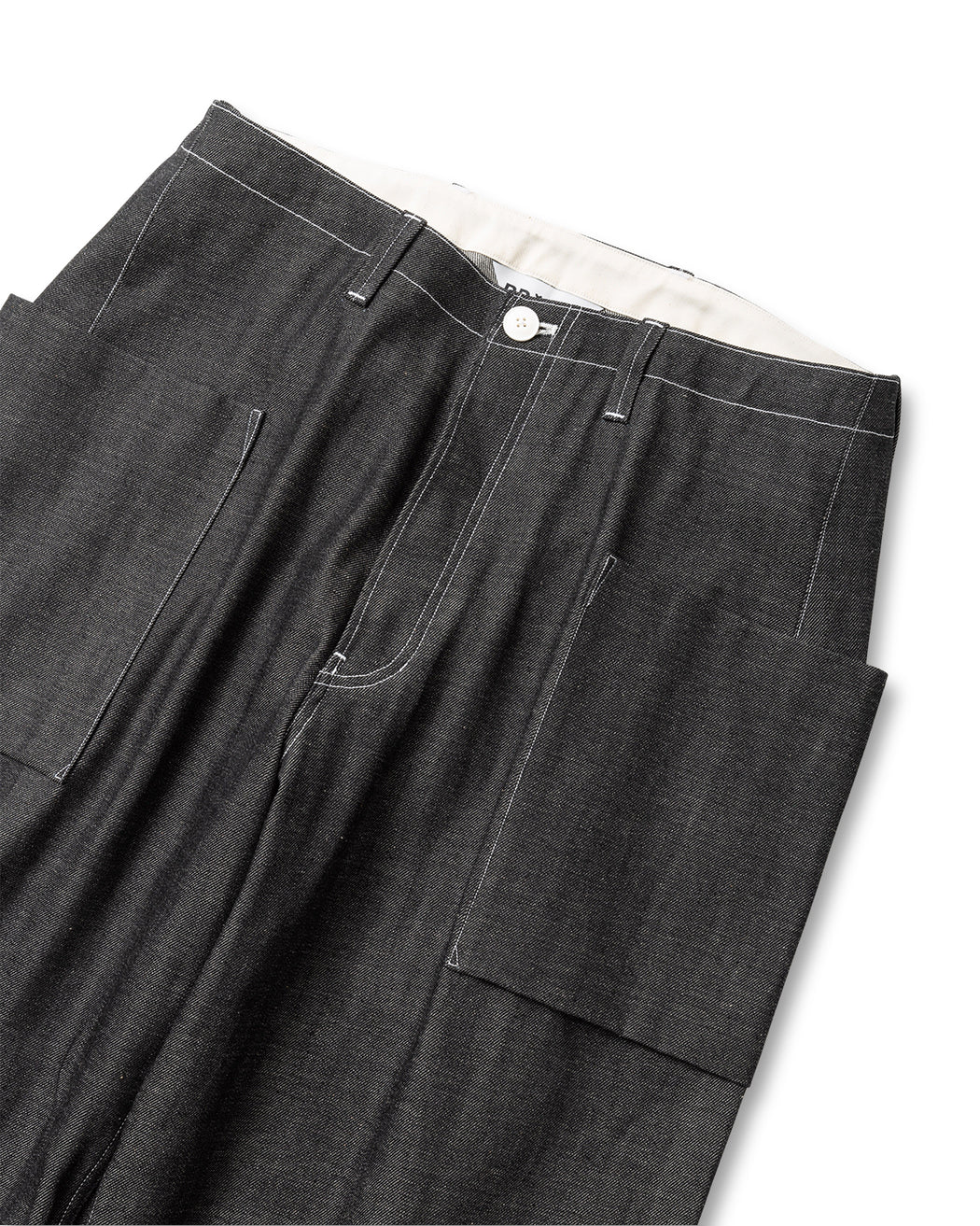 全体はミニマルにまとめつつも、機能的なポケットデザインやステッチワークなど、ワークウェアを思わせるディティールが特徴です。